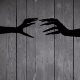 என் பின்னால் என் போல் பல மடங்கு பெரிதாய் என்னை விழுங்கியபடி கொம்புகள் முளைத்து வால் நீண்டிருக்கும் கோரைப் பற்களைக் காட்டிச் சிரிக்கும் கருத்த எதைக் கண்டதால் உன் கண்கள் பயம் கொள்கின்றன